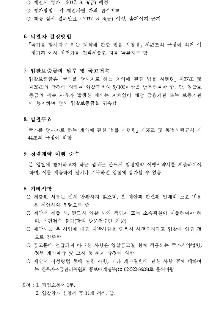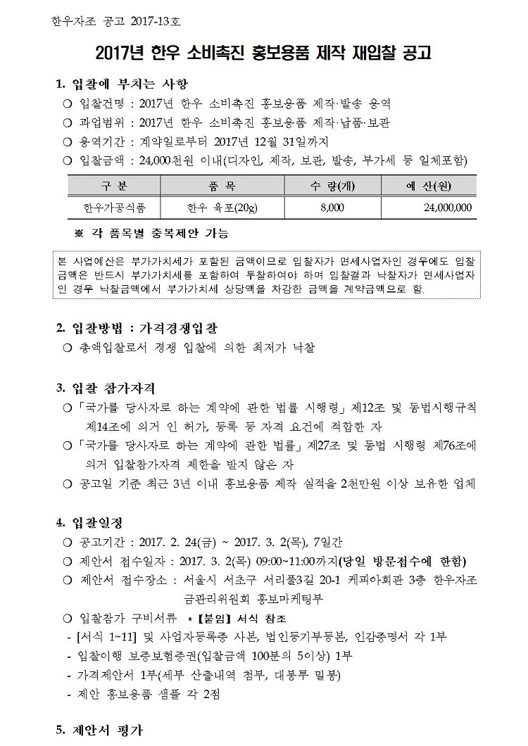 2017년-2018년 한우농가 종합경영컨설팅 용역 업체선정 공고