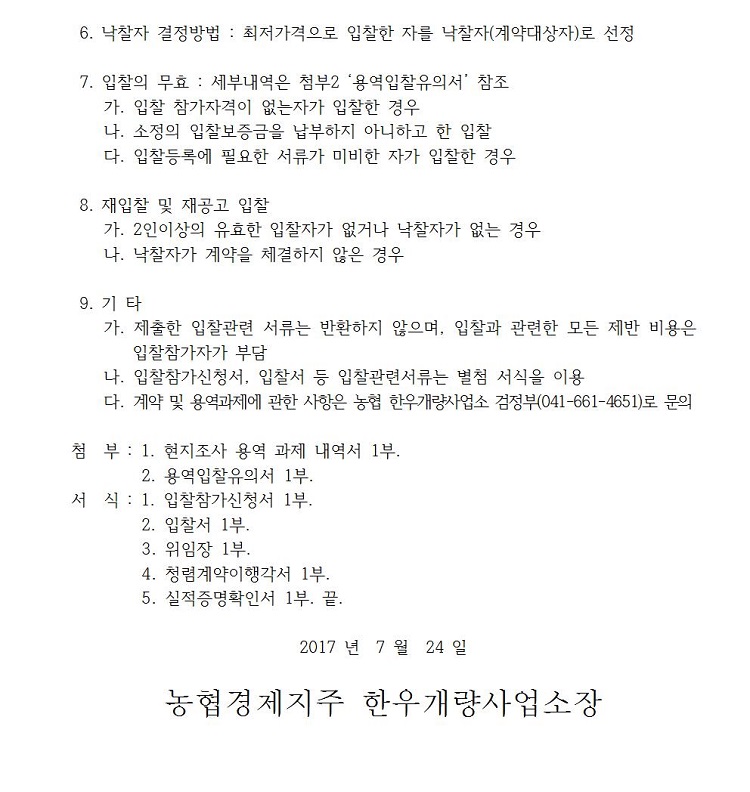 2017년 한우개량 우수농가 사례 현지조사 용역