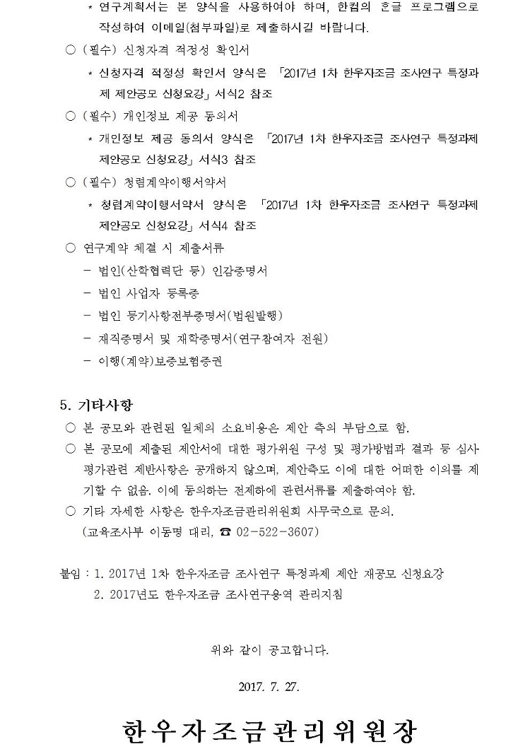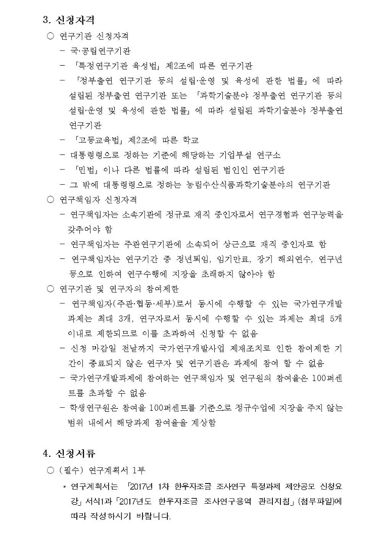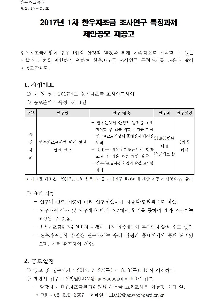 2017년 1차 한우자조금 조사연구 특정과제 제안 재공모 신청요강.hwp