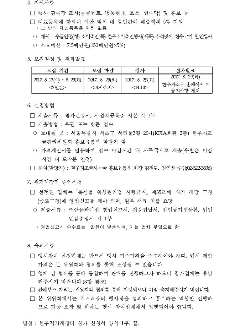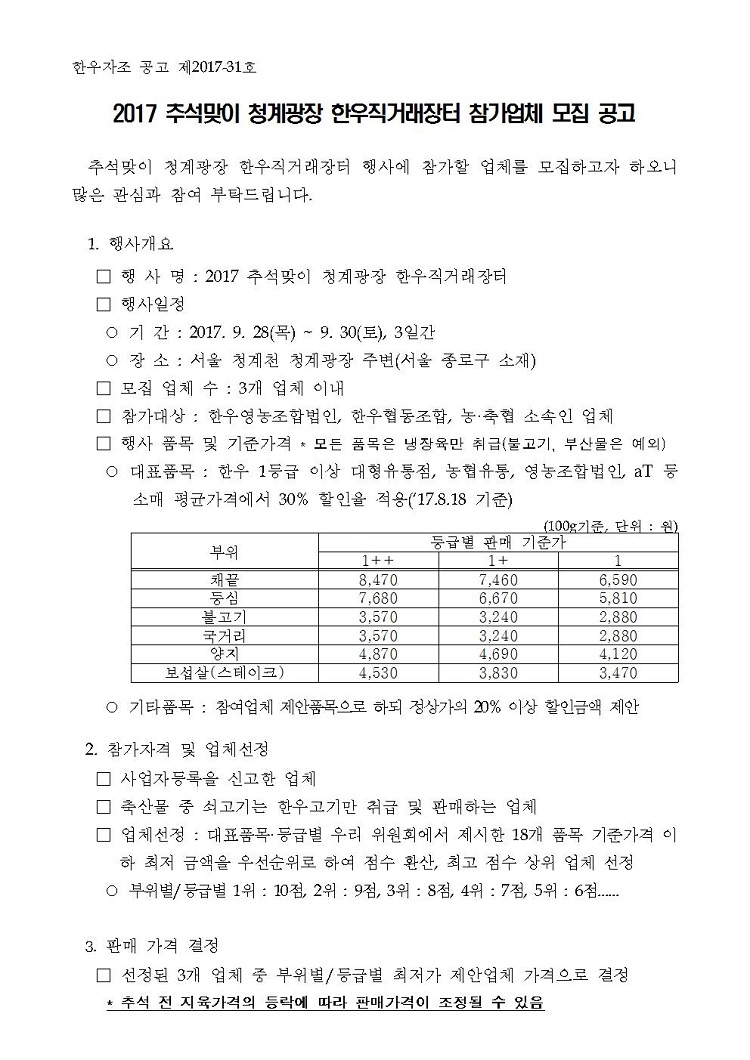 2017 추석맞이 청계광장 한우직거래장터 참가업체 선정 공고문.hwp