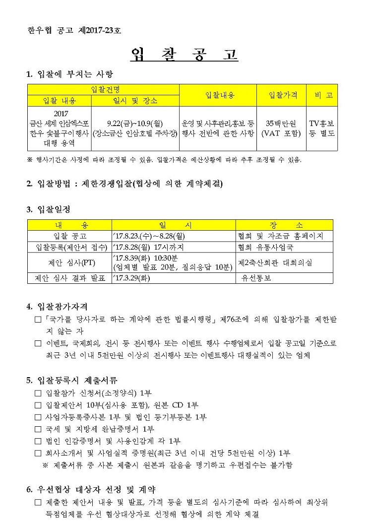 1.금산 세계 인삼엑스포 한우 숯불구이 축제 입찰 공고문.hwp