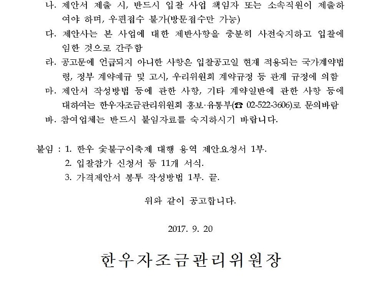 170920 붙임 1) 입찰공고문.hwp