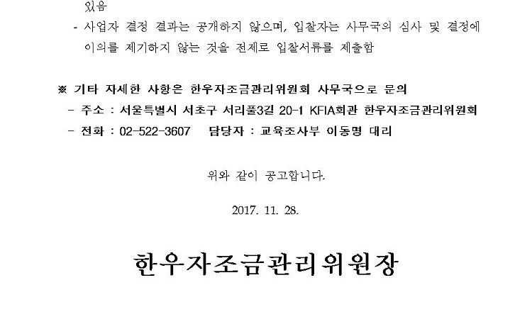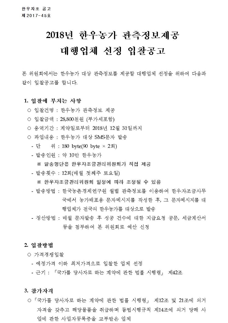 2018년 한우자조금 소식지 제작 및 발송 대행사 선정 입찰공고