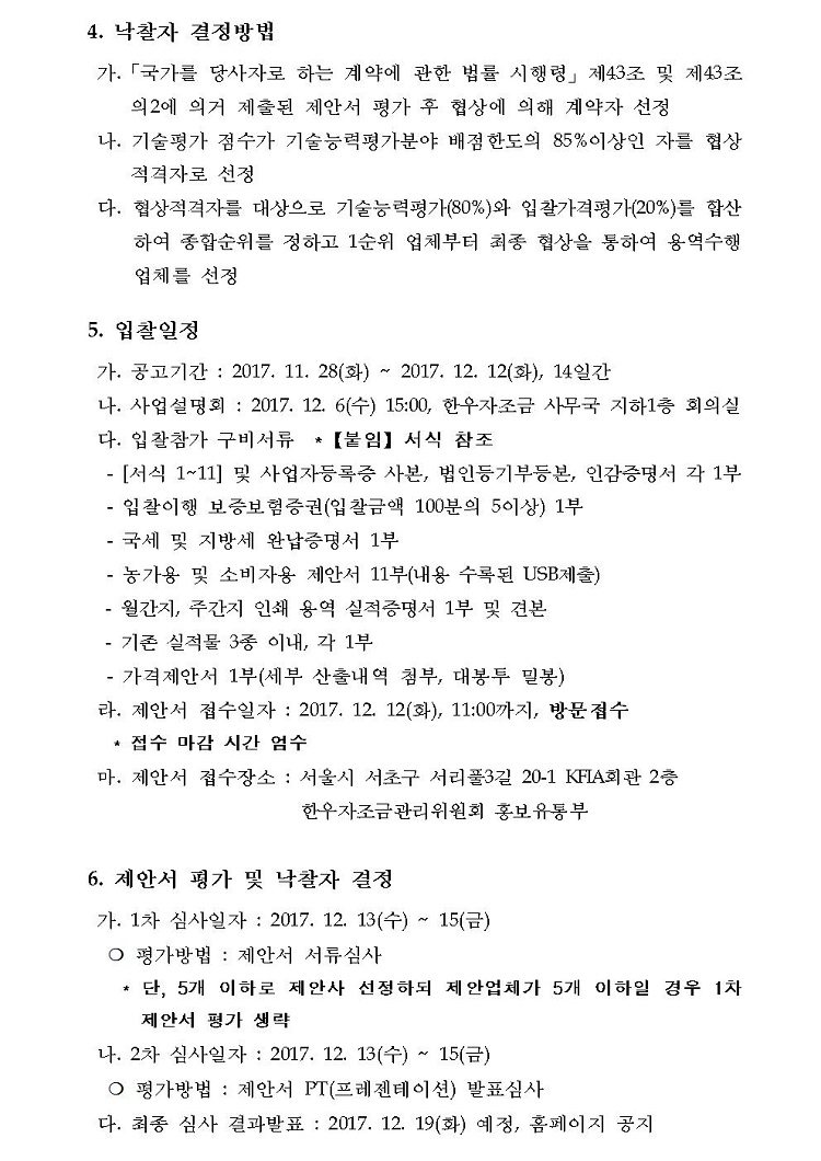 2018년 한우자조금 소식지 제작 및 발송 대행사 선정 제안요청서.hwp