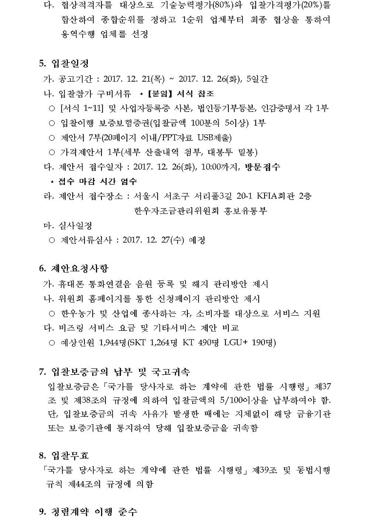 2018년 한우자조금 통화연결음 서비스 대행사 선정 입찰 참가서식.hwp