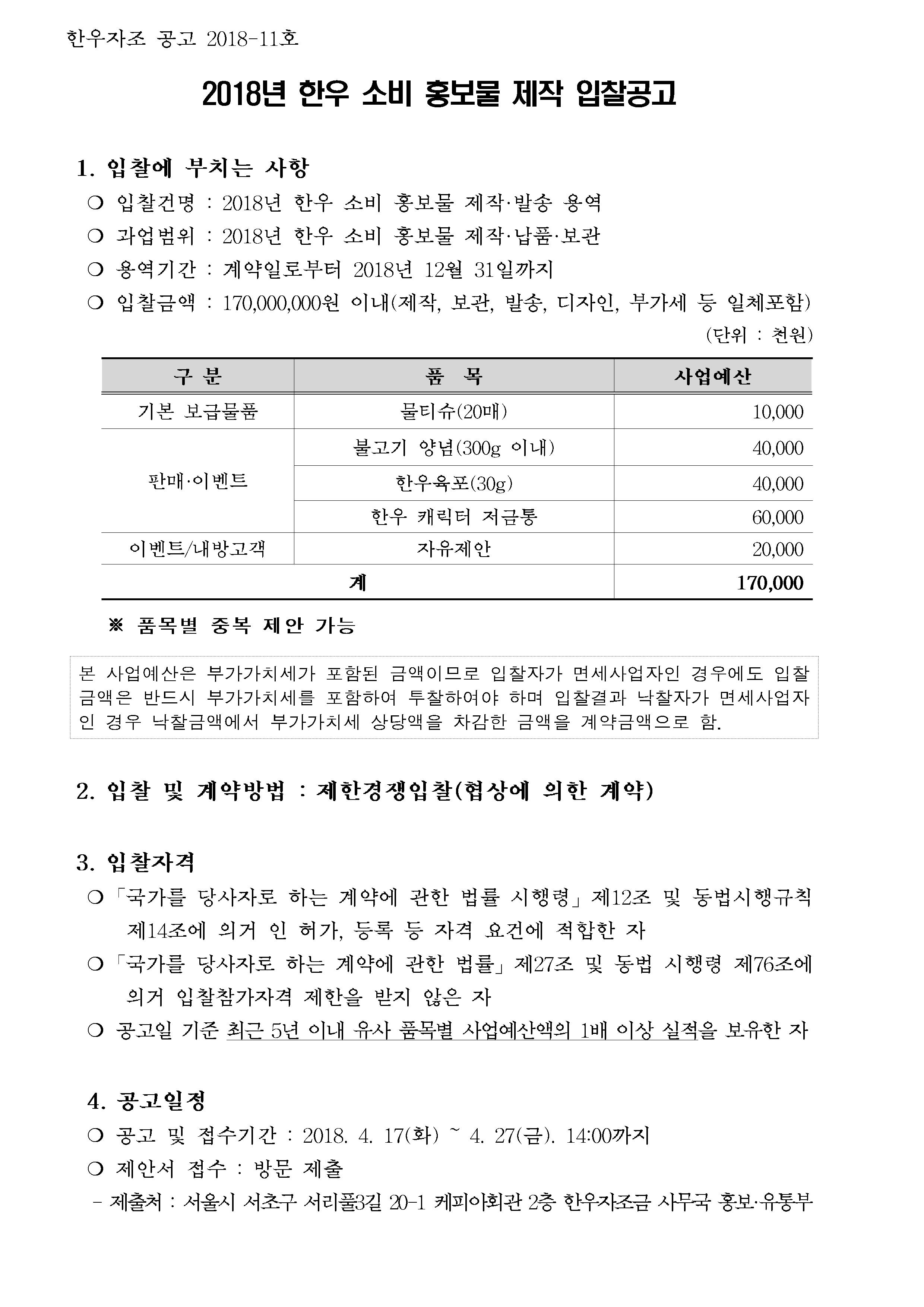 2018년 한우 소비 홍보물 제작 입찰공고문.hwp