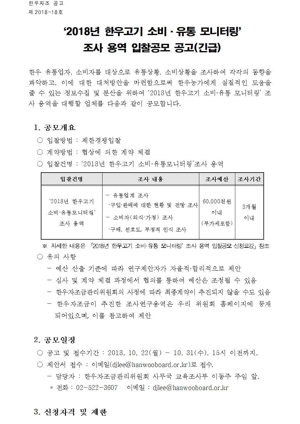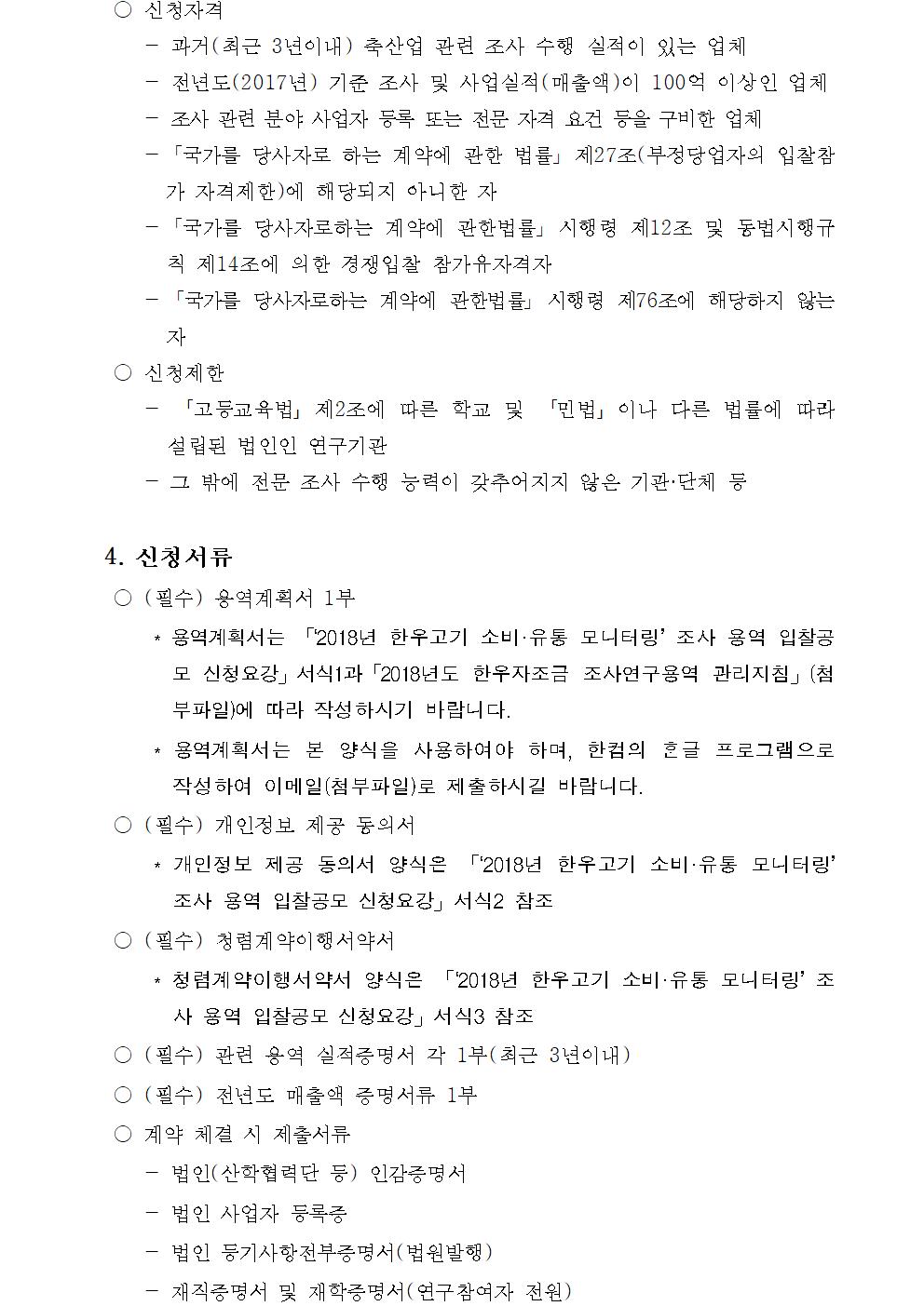‘2018년 한우고기 소비·유통 모니터링’ 조사 용역 입찰공모 신청요강.hwp