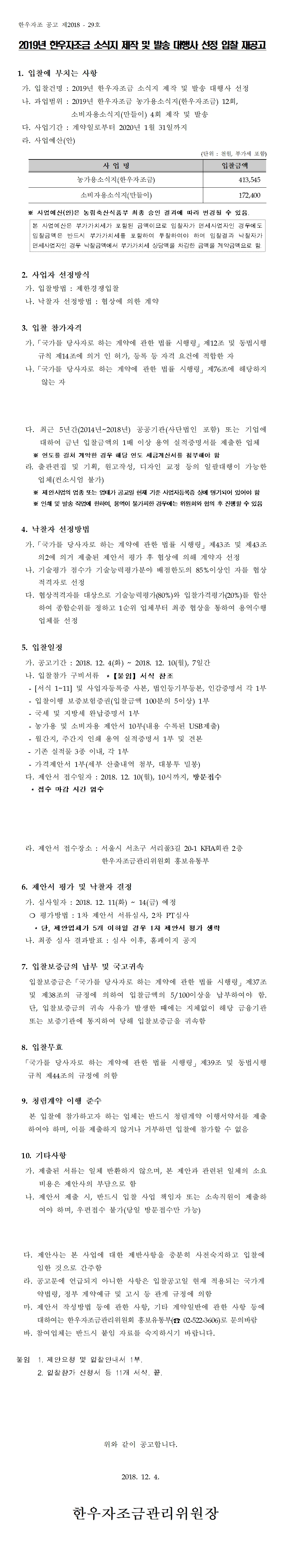 2019년 한우자조금 소식지 제작 및 발송 대행사 선정 입찰 재공고