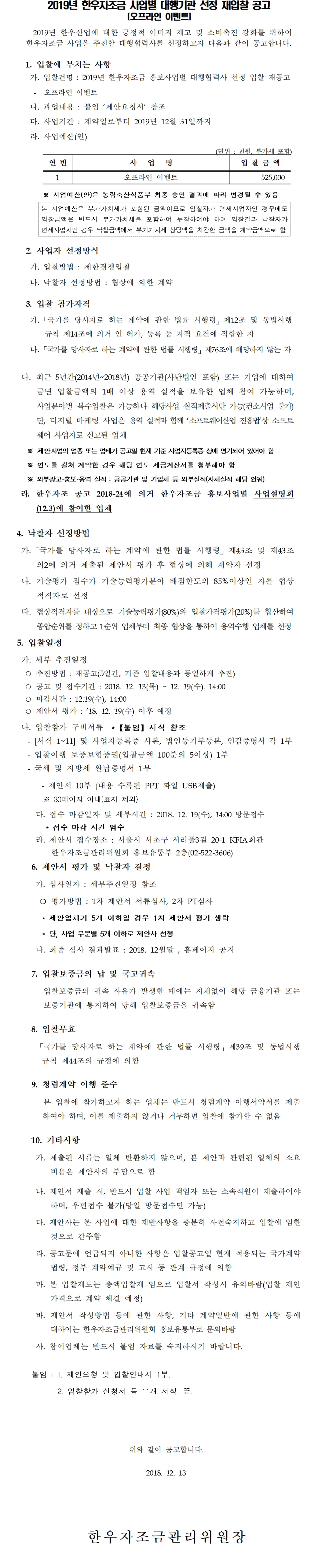 2019년 통화연결음 서비스 대행사 선정 재입찰 공고