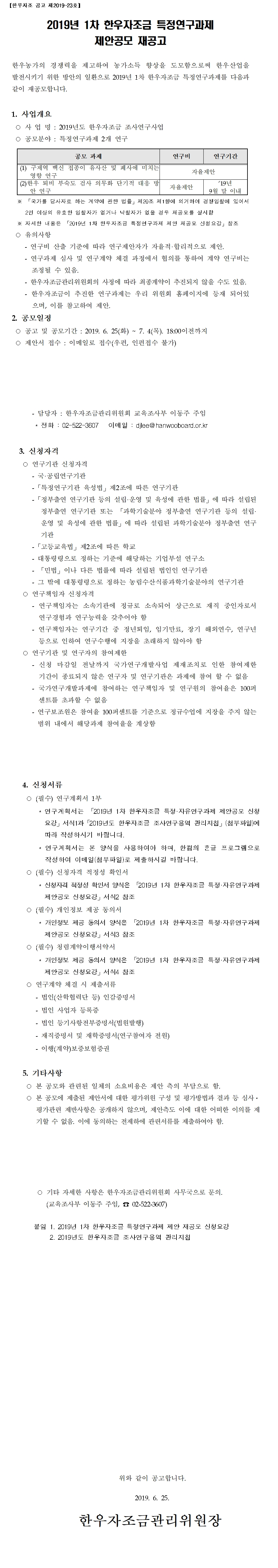 2019년 1차 한우자조금 특정연구과제 제안 재공모 신청요강(3차).hwp