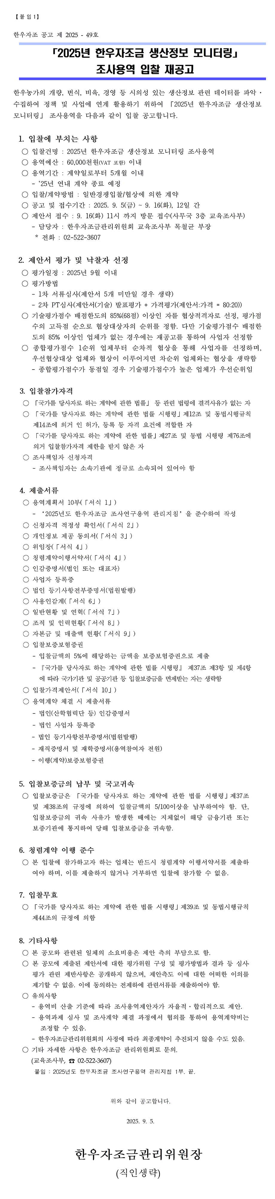 붙임1) 2025년 한우자조금 생산정보 모니터링 조사용역 입찰 재공고.hwp