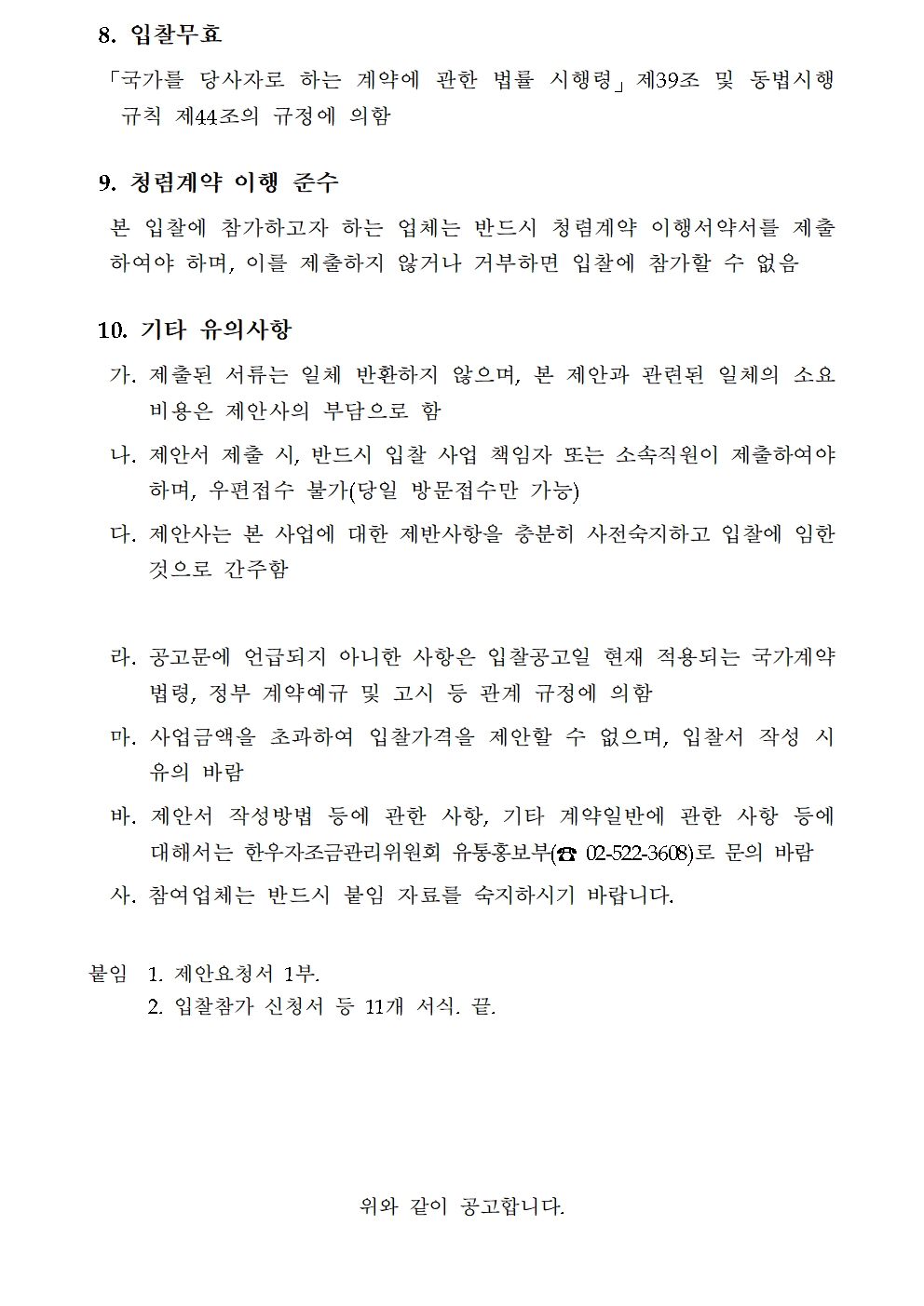 2026년 한우자조금 '한우 PR홍보' 사업 용역 입찰공고