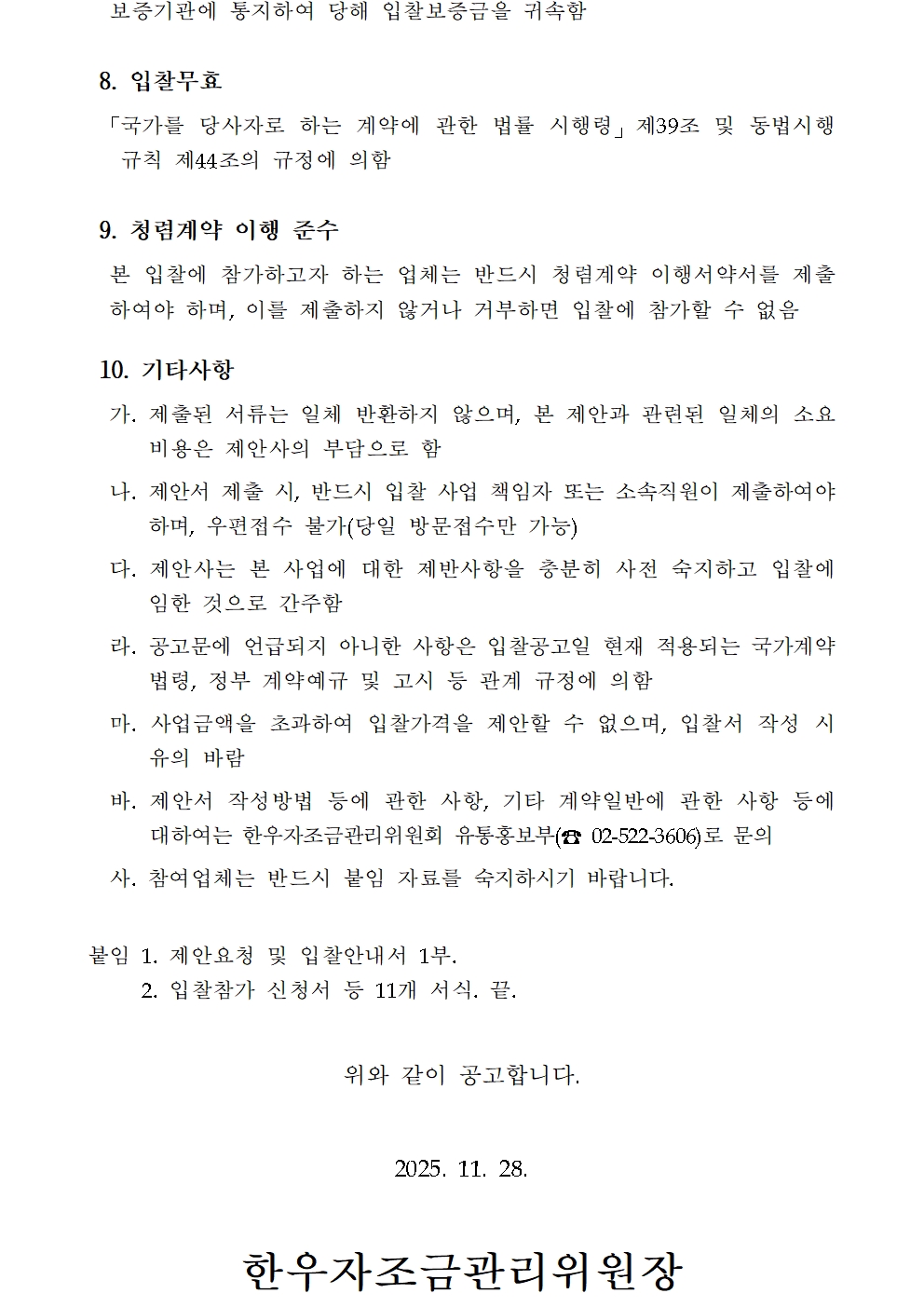 2026년 한우자조금 온라인 한우장터 운영 용역 입찰공고