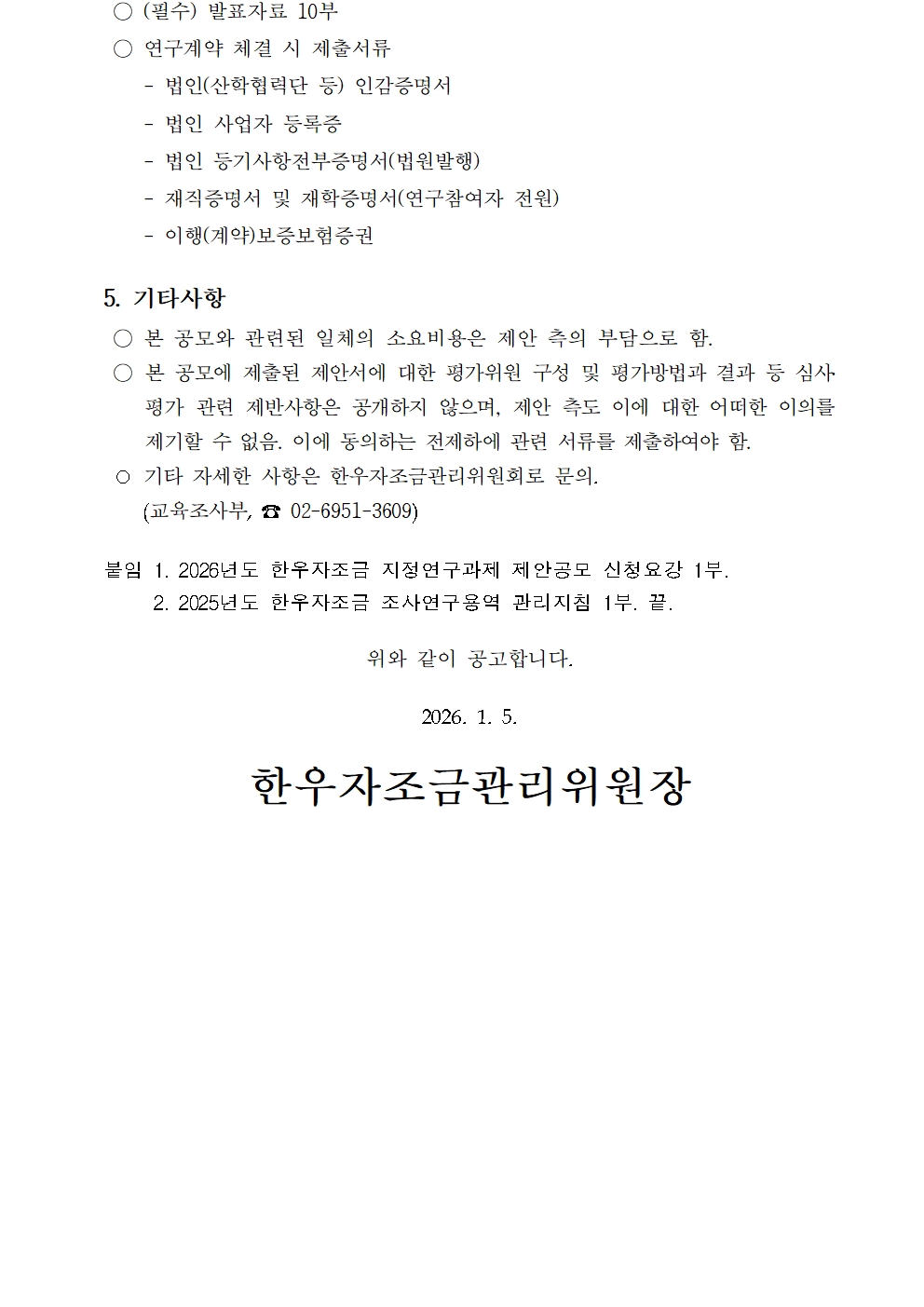 붙임2.2026년도 한우자조금 지정연구과제 제안공모 신청요강_재공고.hwp
