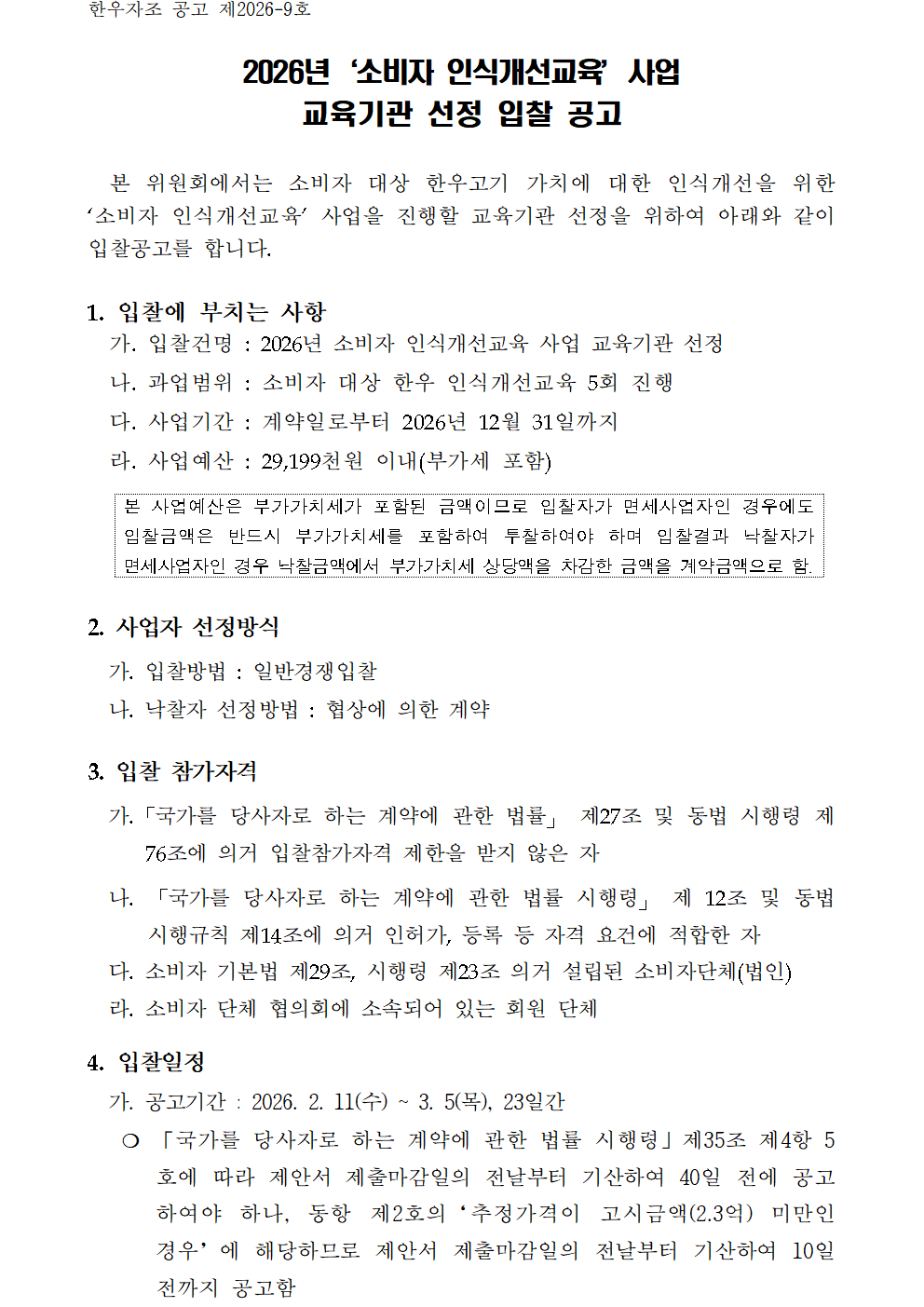 [붙임1] 2026년‘소비자 인식개선교육’사업 교육기관 선정 입찰 공고.pdf
