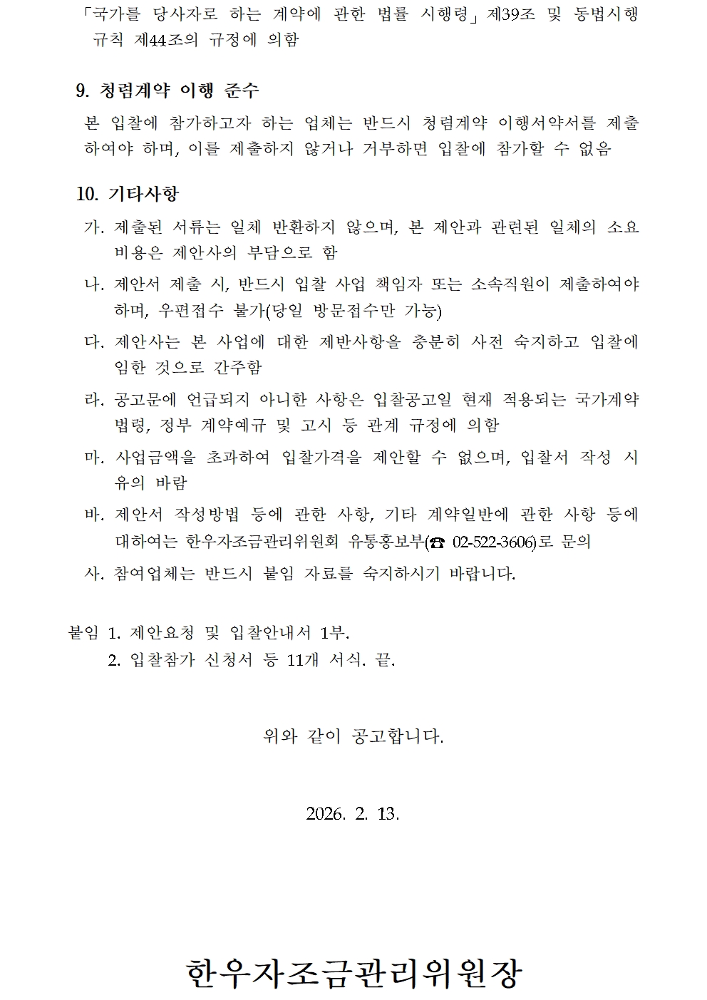 2026년 한우 세계화 체험 사업 용역 입찰공고(공고문).hwp