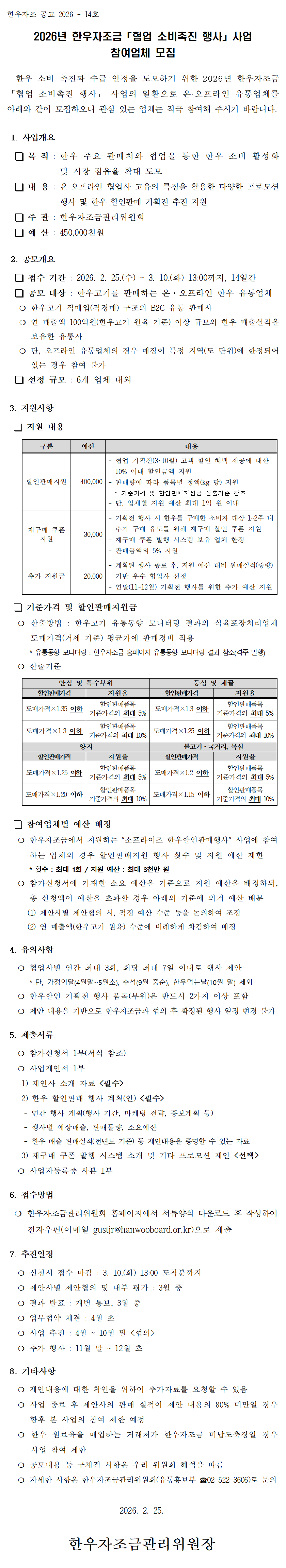 (공고) 2026년 한우자조금 협업 소비촉진 행사 사업 참여업체 모집.hwp