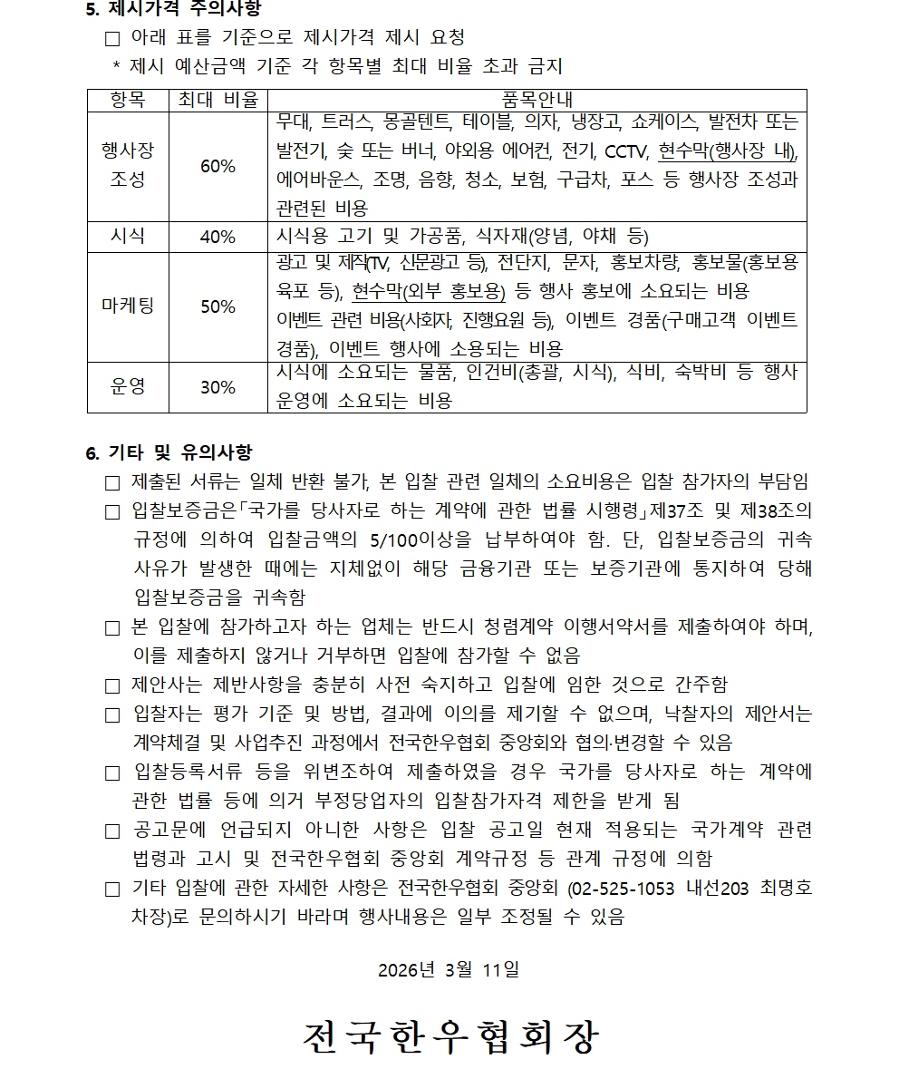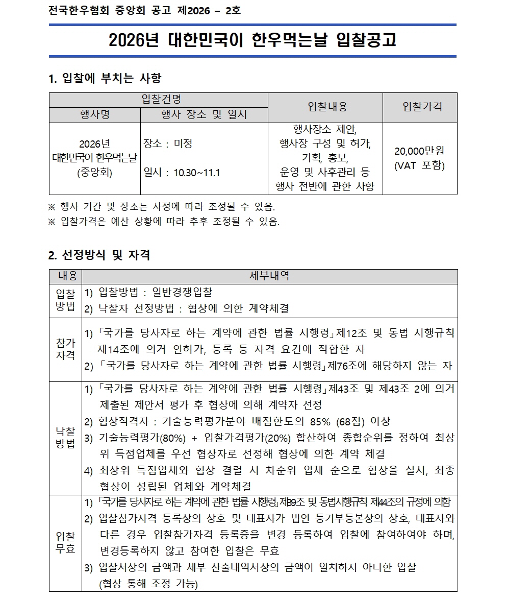 2026 대한민국이 한우먹는날 입찰공고