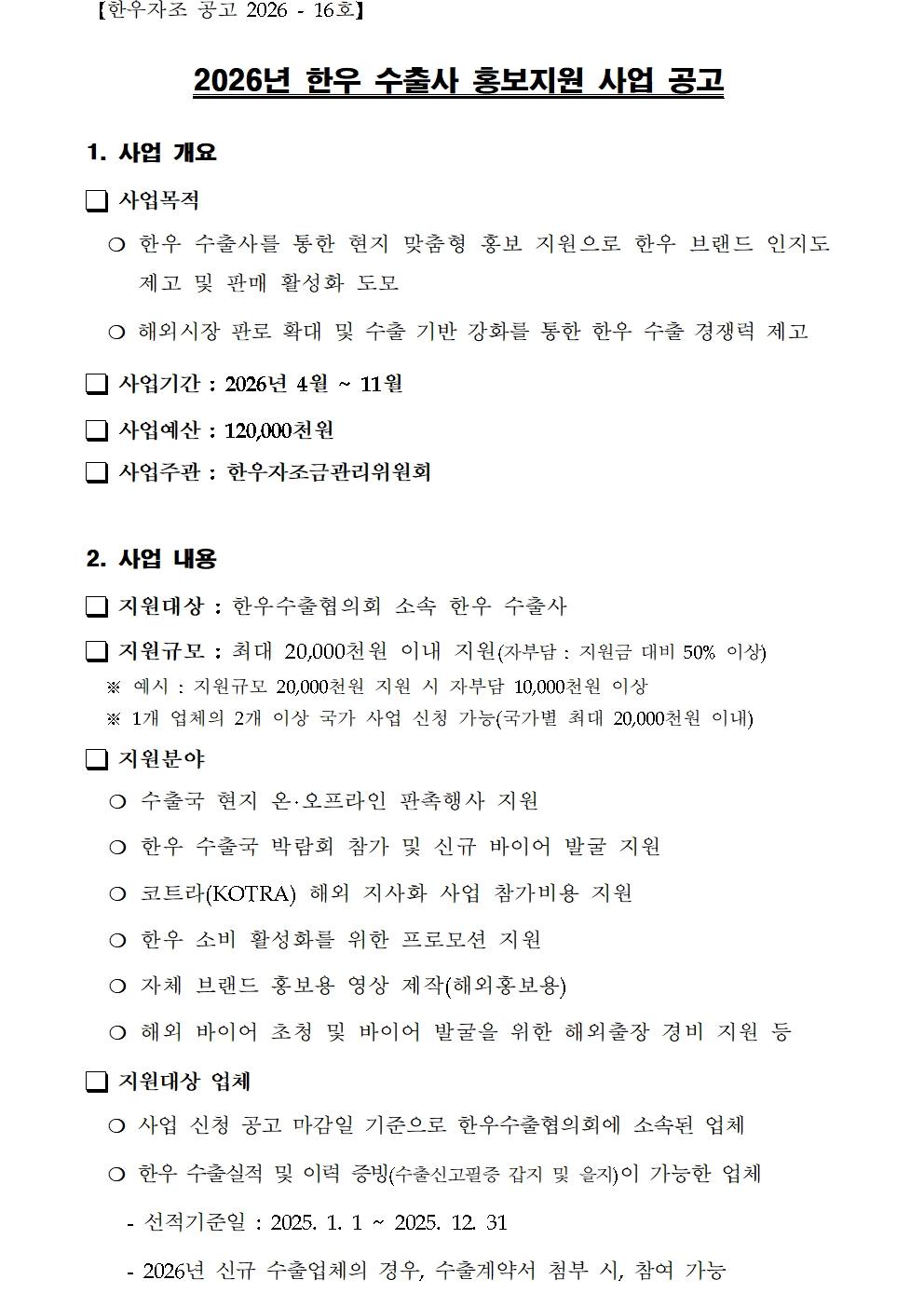 2026년 한우자조금 한우 수출사 홍보지원 사업 공고.hwp