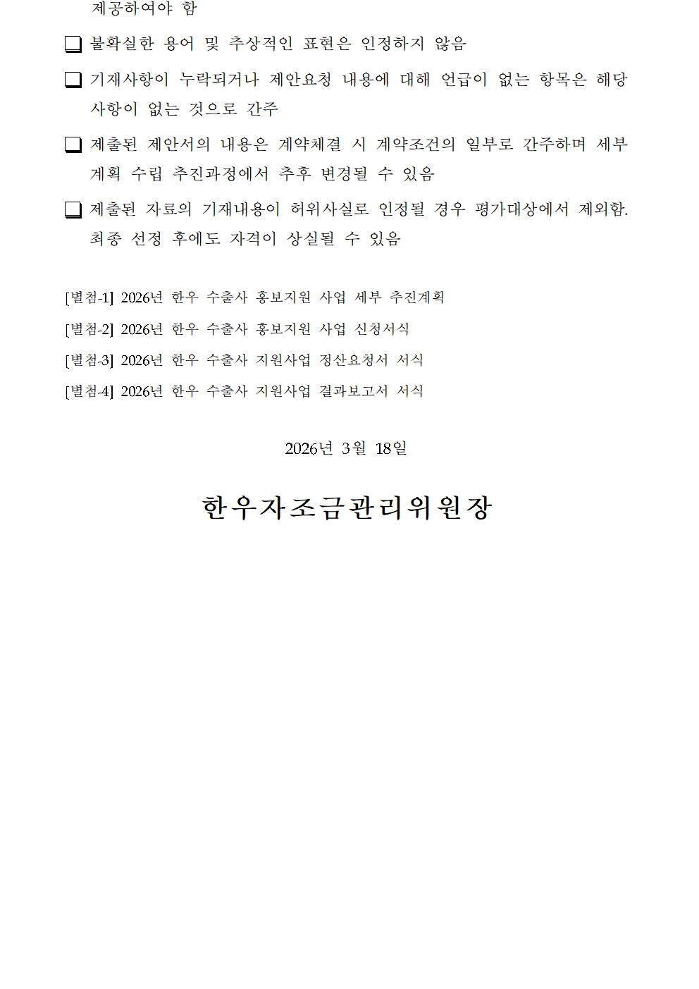 [별첨1~4] 2026년 한우자조금 한우 수출사 홍보지원 사업 세부추진 계획 및 서식.hwp