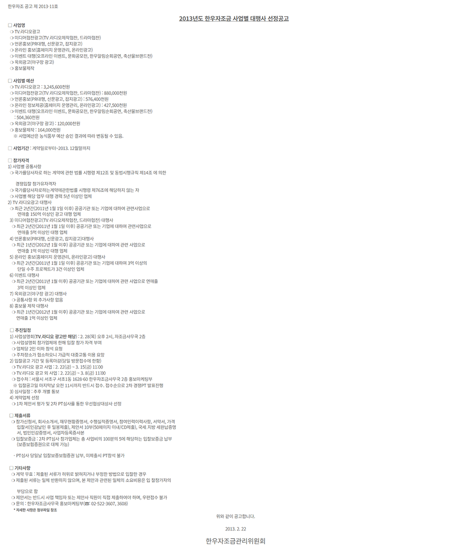 2013 사업별 대행사 선정 설명자료(130222)최종.hwp