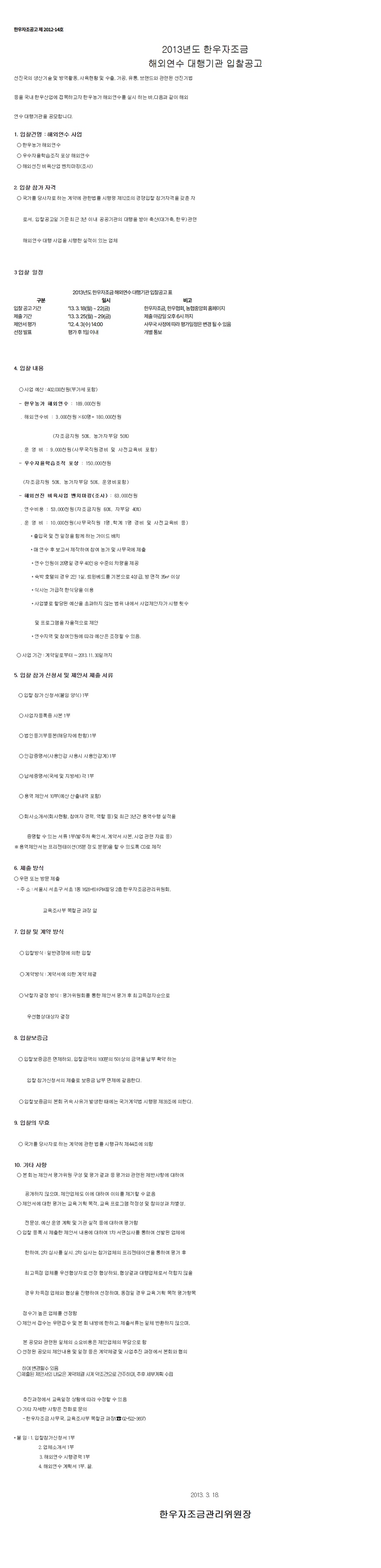 [입찰공고]2013년도 한우자조금 해외연수 대행기관 입찰공고