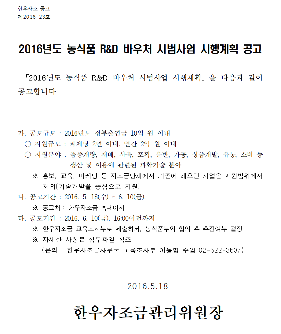 2016년 농식품 R&D 바우처 시범사업 시행계획 공고.hwp