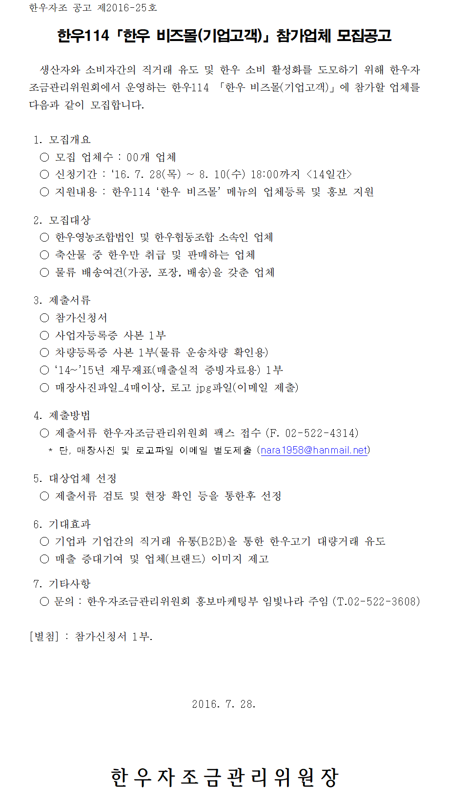한우114「한우 비즈몰(기업고객)」참가업체 모집공고문.hwp
