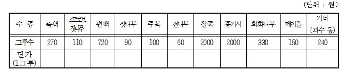 ※ 각 개인별 농장까지 배송을 감안하여, 나무단가에 배송료 등 일체 포함하여 제안