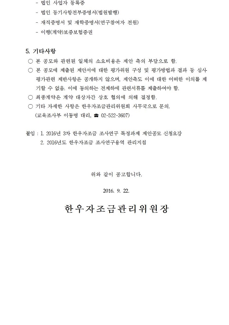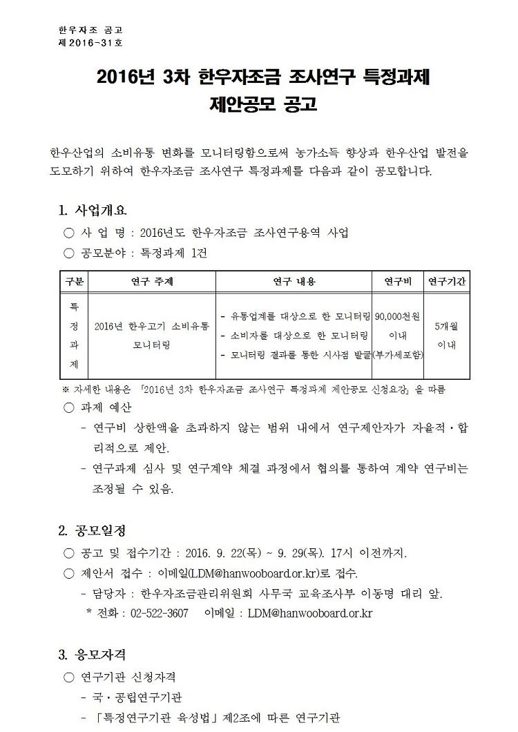 2016년 3차 한우자조금 조사연구 특정과제 제안공모 공고문.hwp