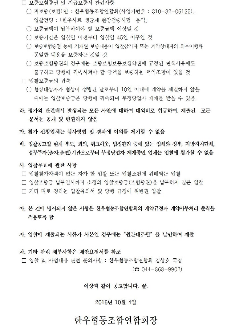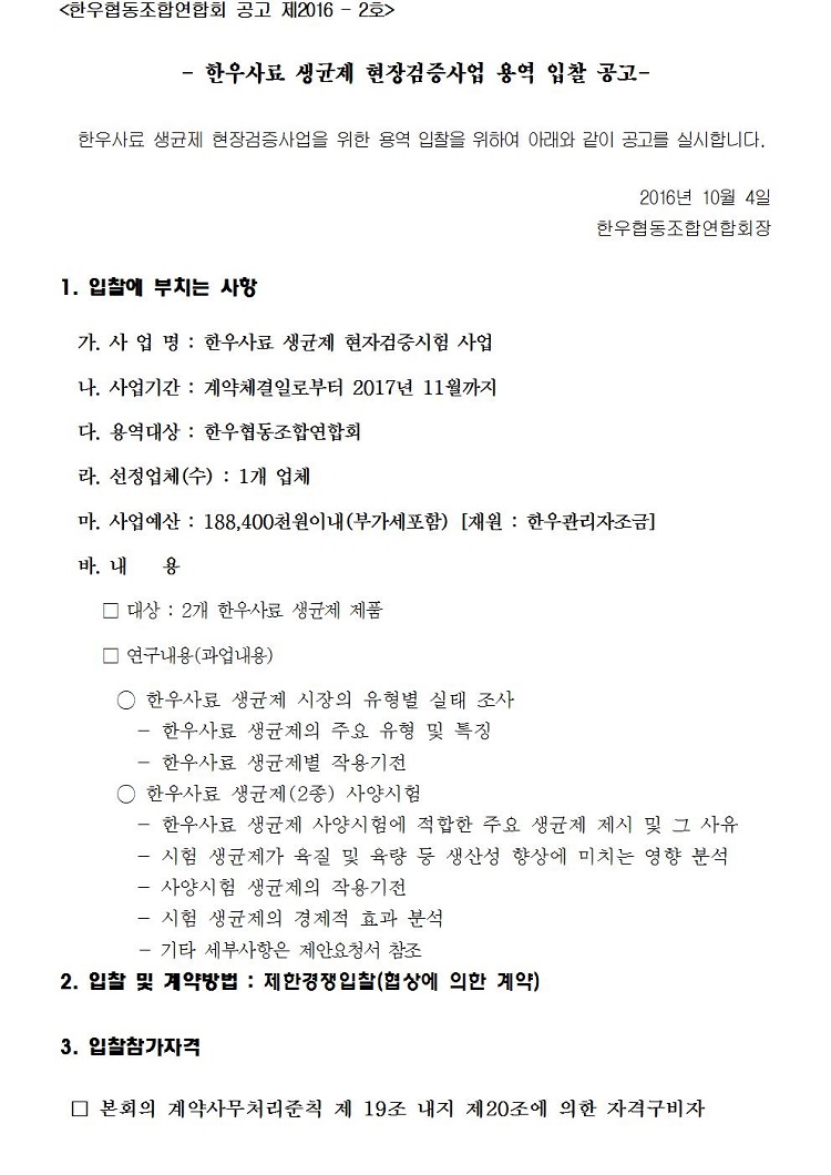 2016년 3차 한우자조금 조사연구 특정과제 제안공모 공고