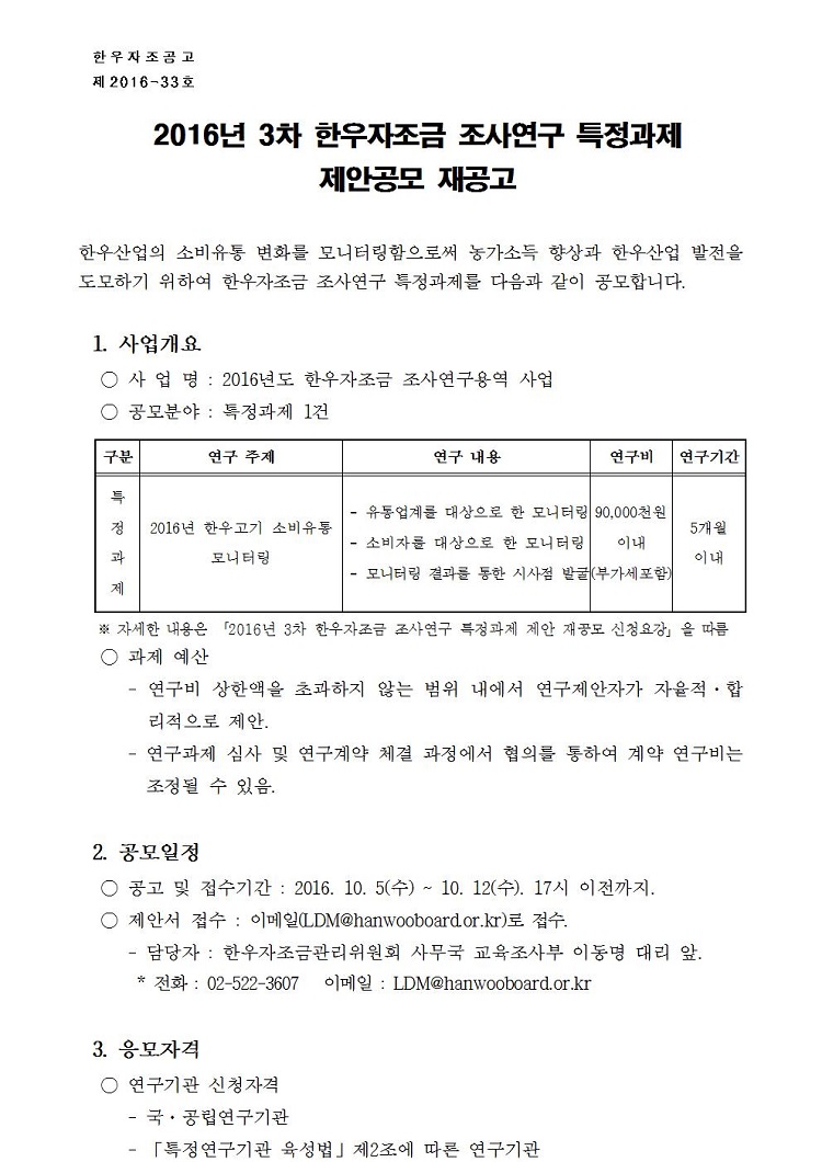 2016년 3차 한우자조금 조사연구 특정과제 제안 재공모 공고문.hwp