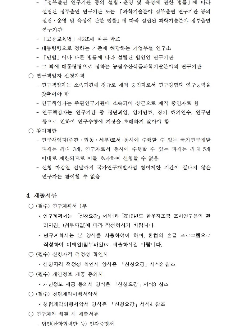 2016년 3차 한우자조금 조사연구 특정과제 제안 재공모 신청요강.hwp