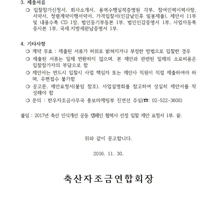 2017년 축산 인식개선 공동 캠페인 협력사 선정 입찰 공고문.hwp