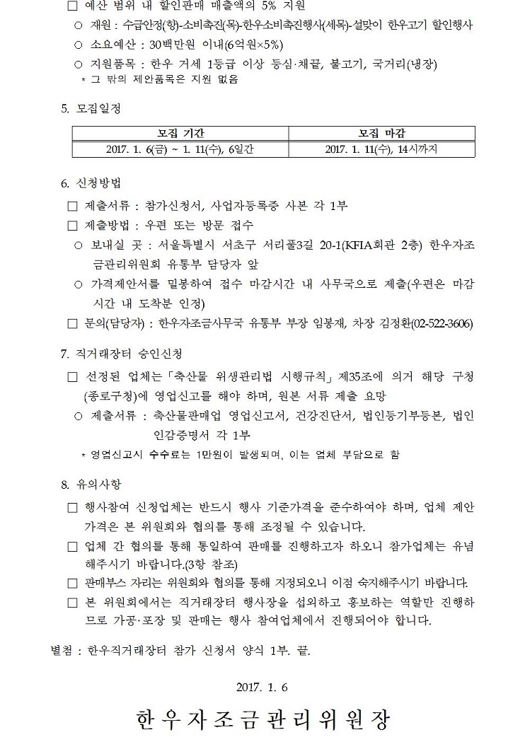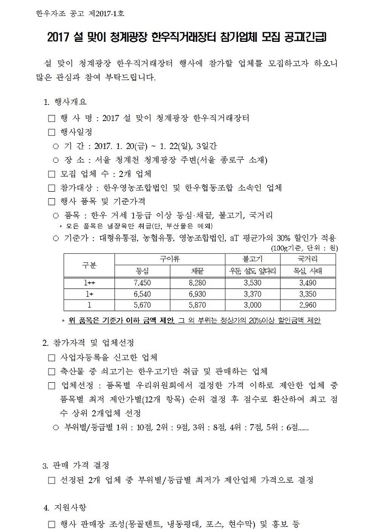 2017년 설 맞이 청계광장 한우직거래장터 참가업체 선정 공고문.hwp