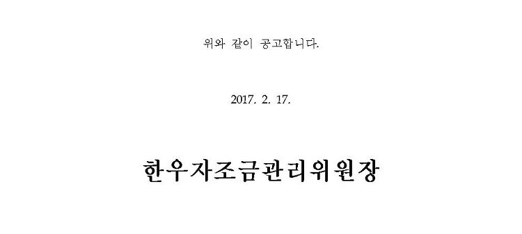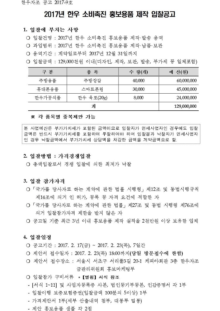 2017년 한우 소비촉진 홍보용품 제작 입찰공고