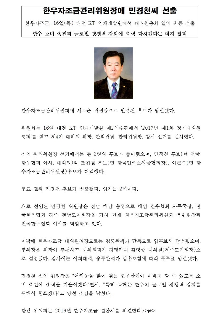 [보도자료]한우자조금관리위원장에 민경천씨 선출(최종).hwp