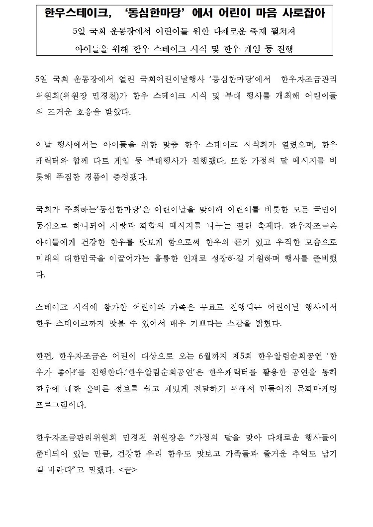 [보도자료]한우스테이크, \'동심한마당\'에서 어린이 마음 사로잡아.hwp