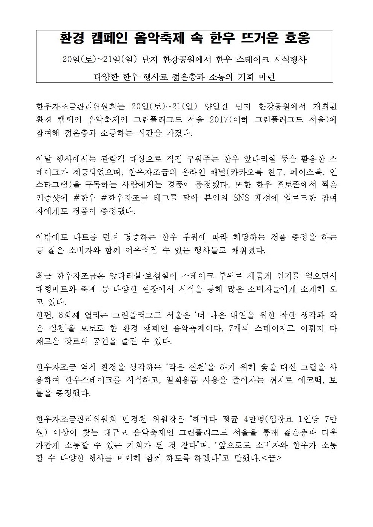 [보도자료]환경 캠페인 음악축제 속 한우 뜨거운 호응.hwp
