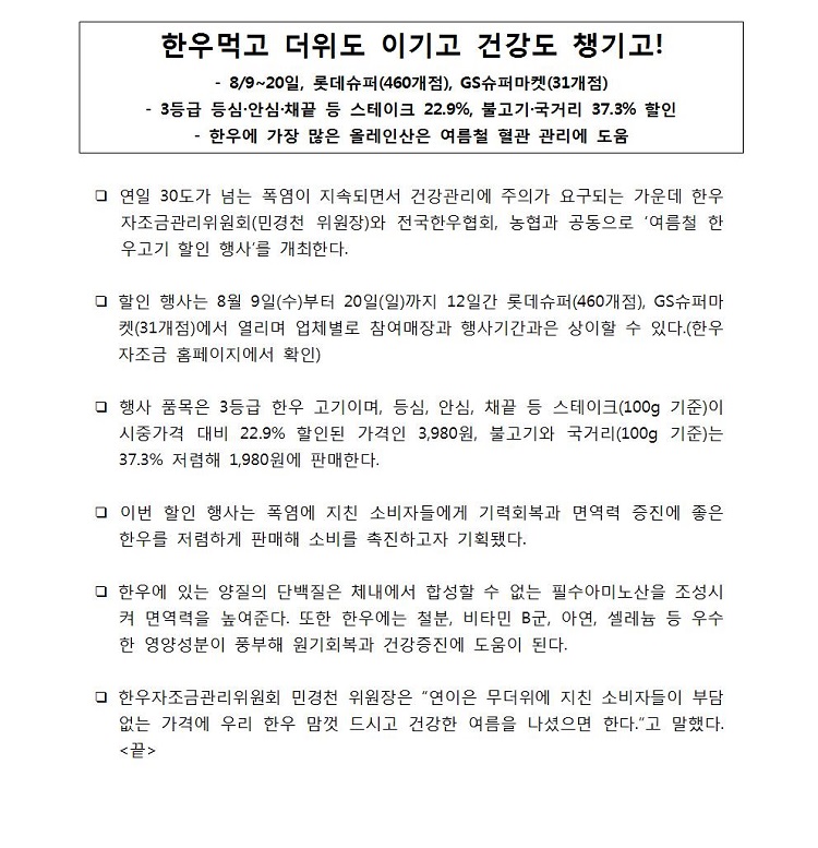 [보도자료] 여름철 한우고기 소비촉진행사.hwp