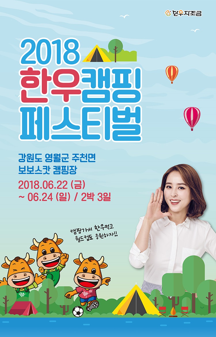 한우자조금관리위원회(위원장 민경천)가 6월 22일부터 24일까지, 2박 3일간 강원도 영월군 주천면에 위치한 보보스캇 캠핑장서 한우공감 캠핑 페스티벌을 개최하기 위해 신청자 총 70팀을 모집한다.