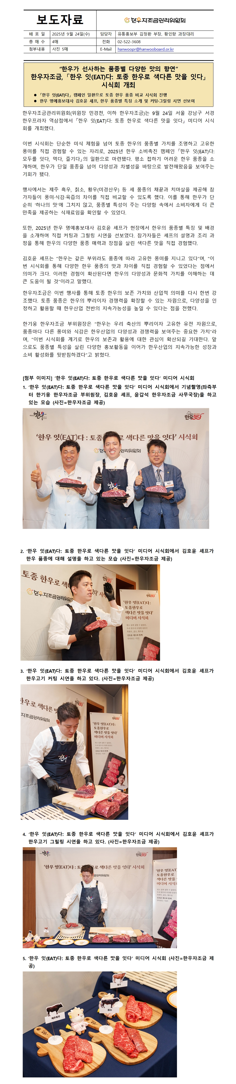 [한우자조금-보도자료] 한우자조금, 「한우 잇(EAT)다 토종 한우로 색다른 맛을 잇다」 성료.hwp