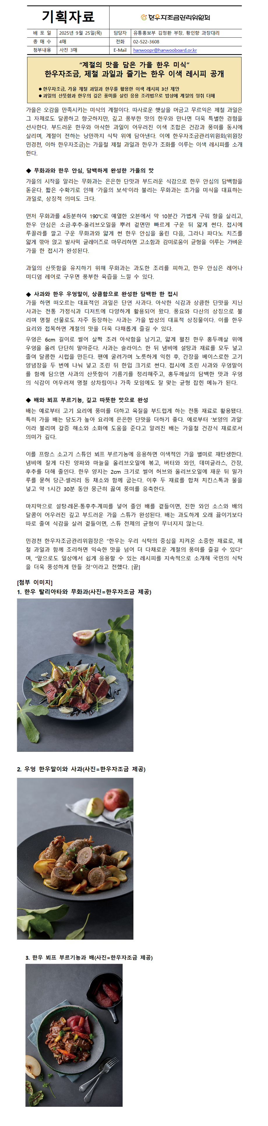 [한우자조금-기획자료] 한우자조금, 제철 과일과 즐기는 한우 이색 레시피 공개.hwp