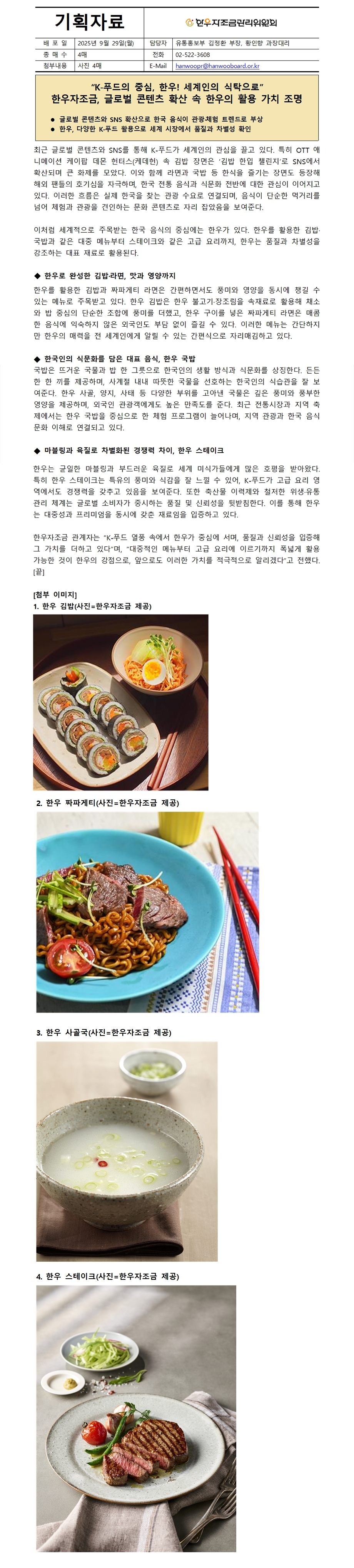 [한우자조금-기획자료] 한우자조금, 글로벌 콘텐츠 확산 속 한우의 활용 가치 조명.hwp