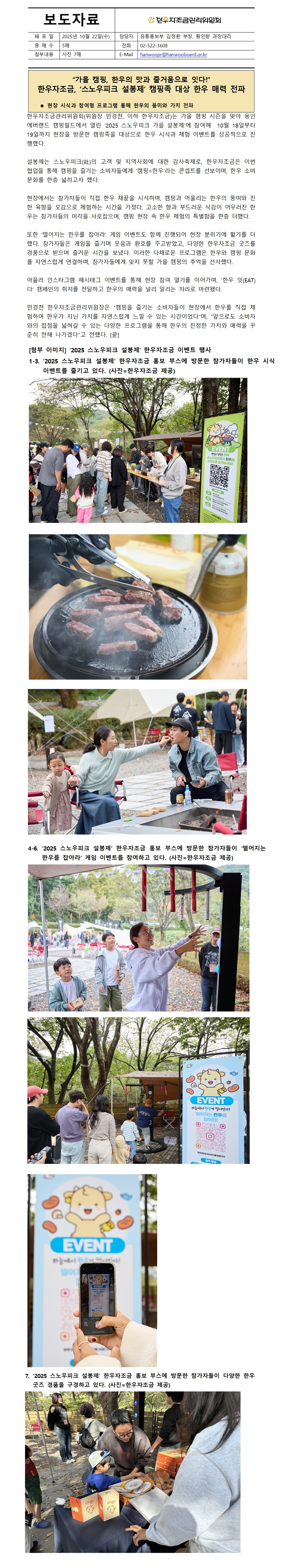 [한우자조금-보도자료] 한우자조금, ‘스노우피크 설봉제‘ 캠핑족 대상 한우 매력 전파.hwp