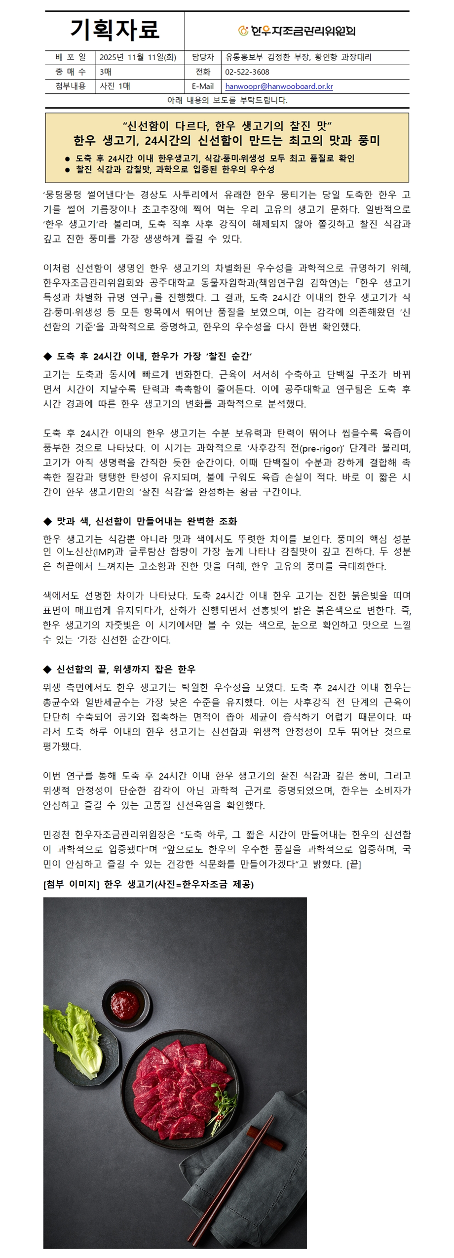 [한우자조금-기획자료] 한우 생고기, 24시간의 신선함이 만드는 최고의 맛과 풍미.hwp
