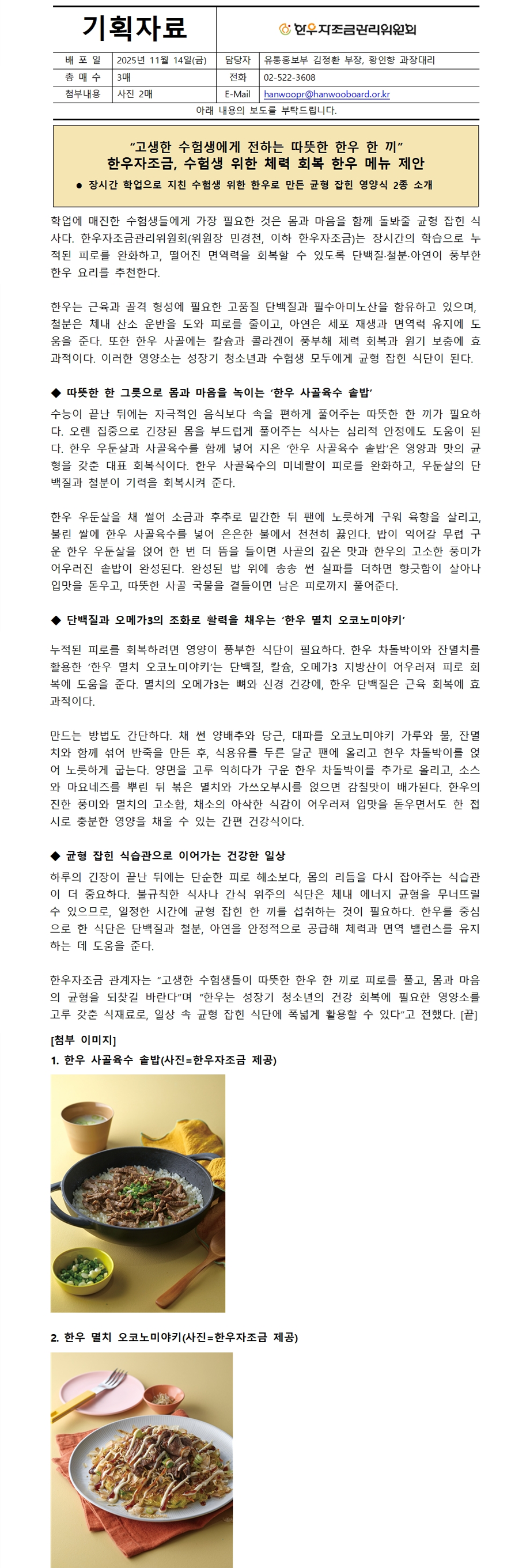 [한우자조금-기획자료] 한우자조금, 수험생 위한 체력 회복 한우 메뉴 제안.hwp