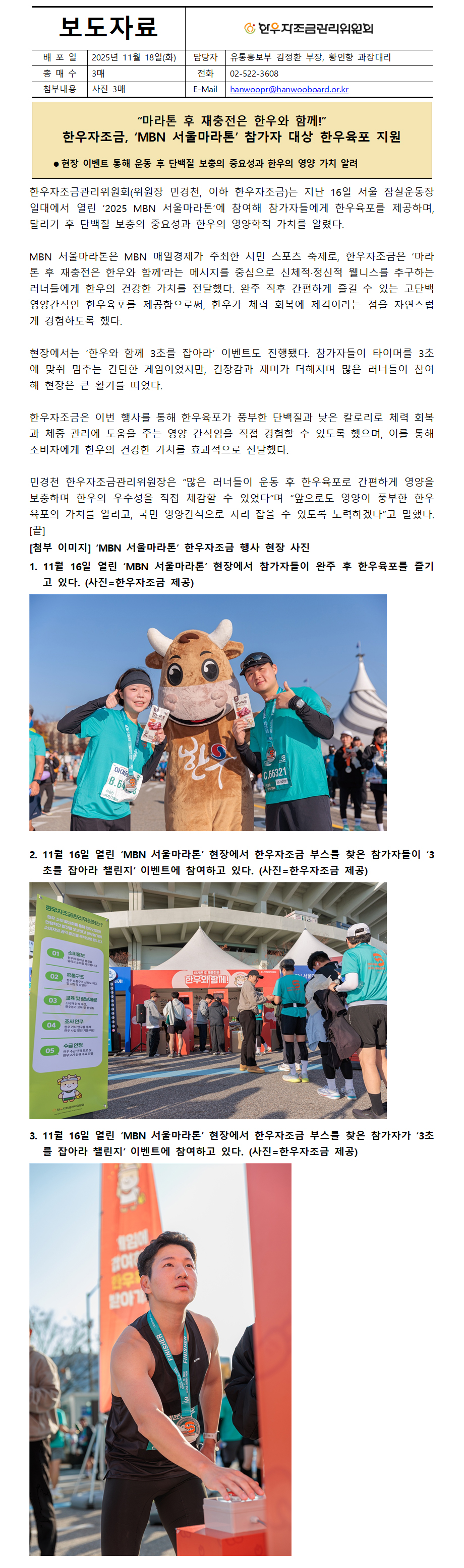 [한우자조금-보도자료] 한우자조금, ‘MBN 서울마라톤’ 참가자 대상 한우육포 지원.hwp