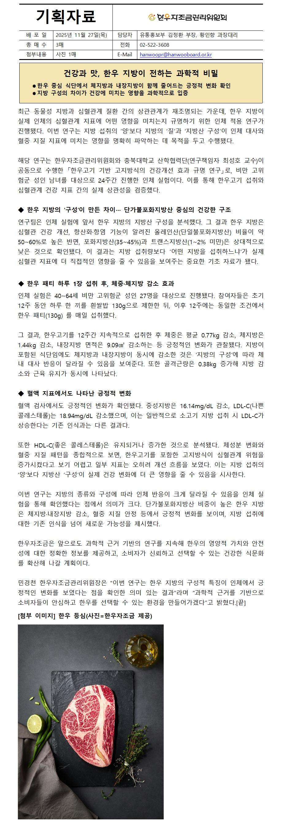 [한우자조금-기획자료] 건강과 맛, 한우 지방이 전하는 과학적 비밀.hwp