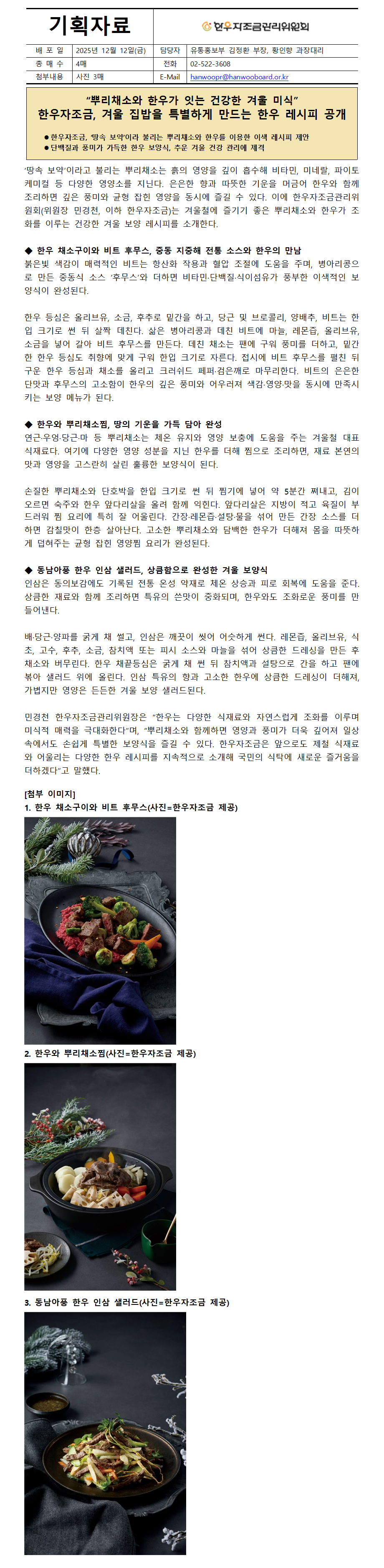 [한우자조금-기획자료] 한우자조금, 겨울 집밥을 특별하게 만드는 한우 레시피 공개.hwp